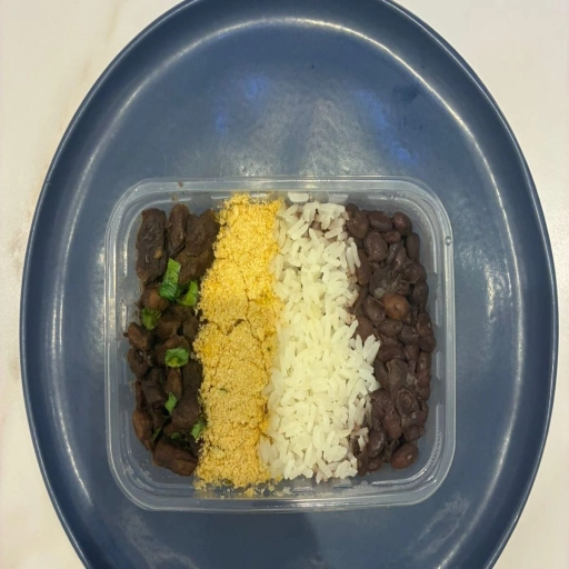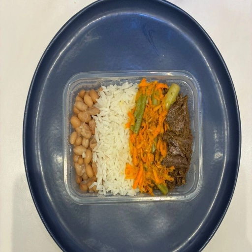 Arroz Branco + Feijão Carioca + Carne Desfiada com Cenoura Ralada 350g