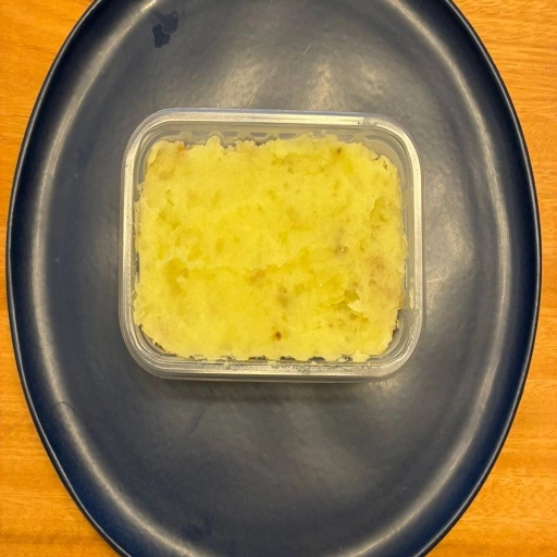 Contém Musculo Bovino com Mandioquinha , Purê de Batata e Cenoura .