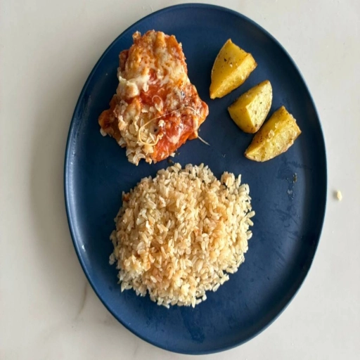 Parmegiana de Filé Mignon + Arroz Integral + Batata Palha